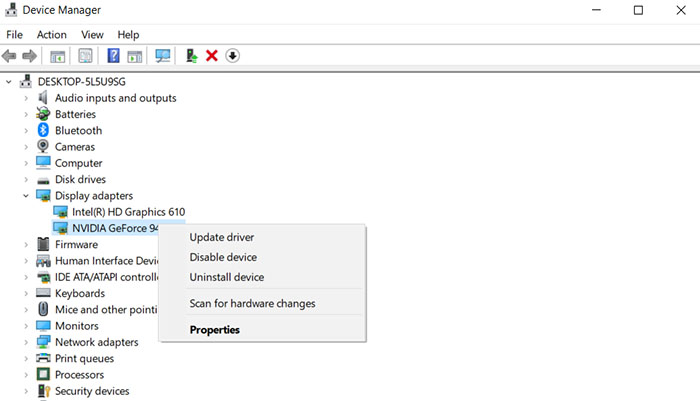 Klicken Sie dann mit der rechten Maustaste auf Ihre Grafikkarte, um „Treiber aktualisieren“ oder „Gerät deinstallieren“ auszuwählen.
